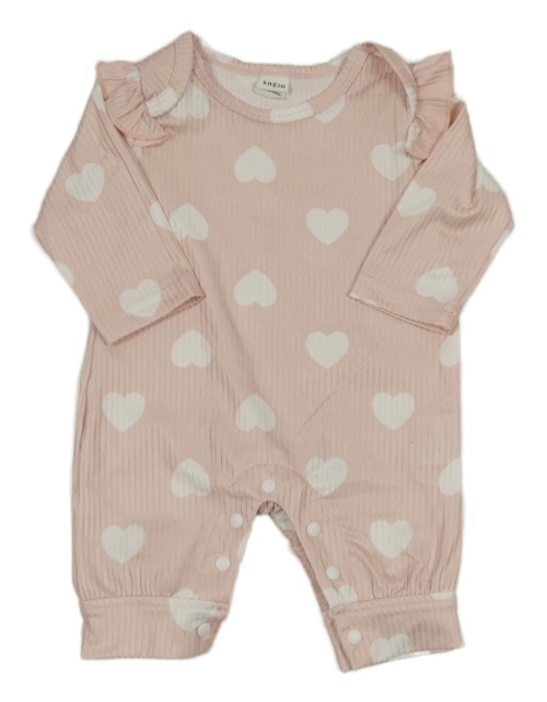 Svetloružový rebrovaný overal so srdiečkami Shein