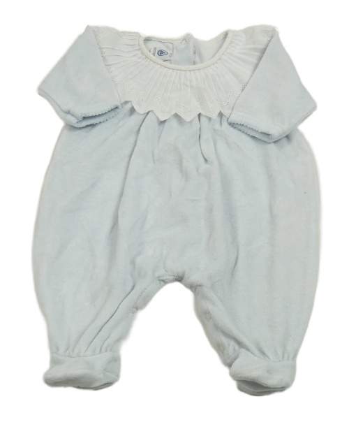 Svetlomodrý zamatový overal s bielým volánikom PETIT BATEAU