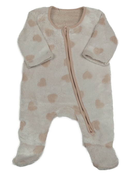 Bielo-pudrový chlpatý overal so srdiečkami George