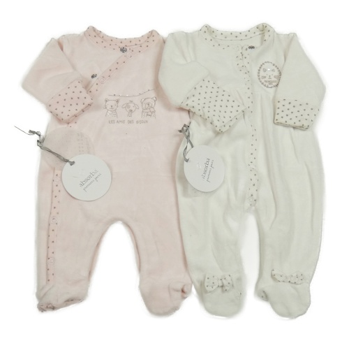 Nové - 2x zamatový overal s kočkou bílý+ růžový Absorba