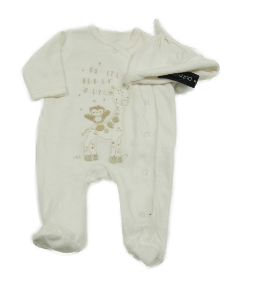 Nové - 2Set - Smotanový zamatový overal so žirafou a sovičkou + čapica St. Bernard