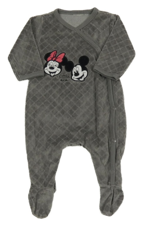 Sivý vzorovaný zamatový overal s Minnie a Mickeym
