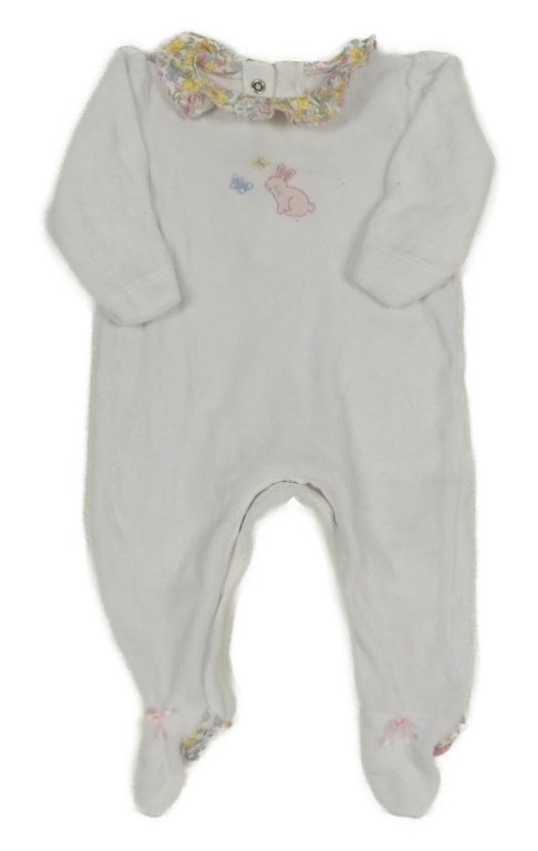 Biely zamatový overal s králikom a motýlikmi a volánikom little nutmeg