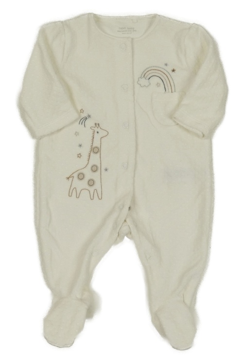 Biely vzorovaný zamatový overal so žirafou a dúhou a vreckom Next