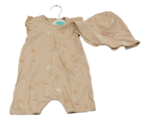 Nové - 2 set - ružový kraťasový overal s mušlemi + klobouček