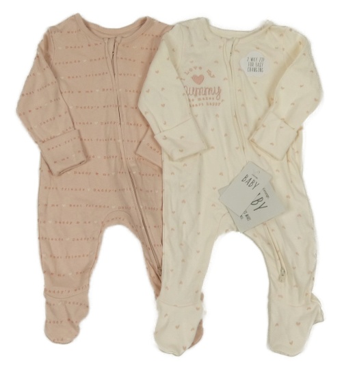 Nové - 2x - Smotanový overal so srdíčky + světlerůžový s nápismi George