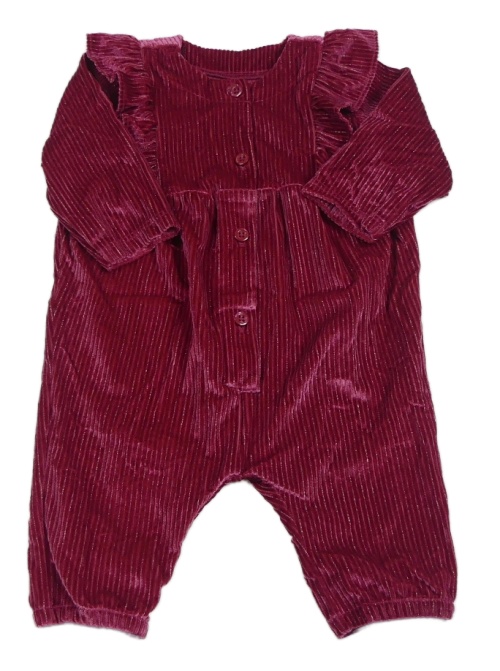 Vínovo-trblietavý rebrovaný zamatový overal s volánikmi George