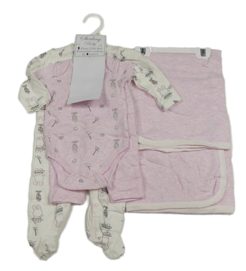 Nový - 4Set - Biely overal so zajíčky + svetloružové body + legíny + deka
