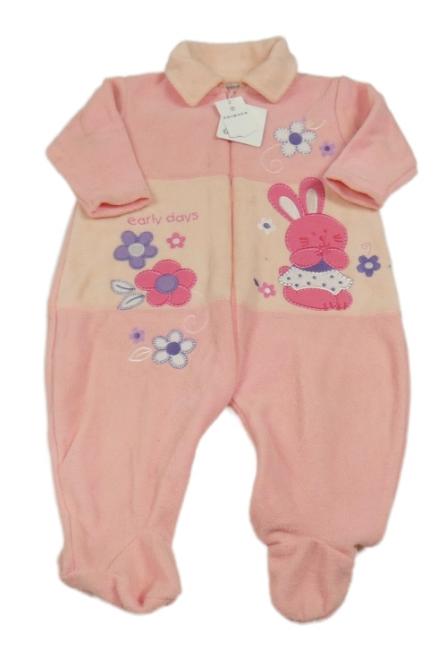 Nové - Ružový fleecový overal s králikom a kvetmi Early Days