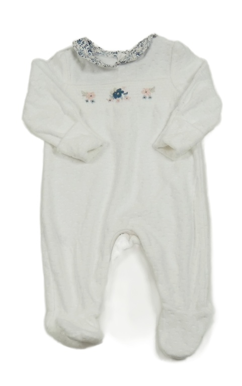 Biely vzorovaný zamatový overal s kvetmi a golierikom Tu