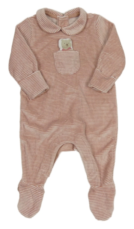 Ružový pruhovaný zamatový overal s medvedíkom M&S