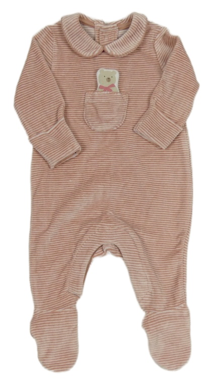 Ružový pruhovaný zamatový overal s medvedíkom M&S