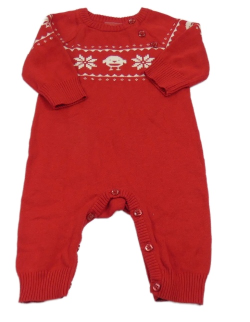 Červeno-biely svetrový overal s norským vzorom a vtáčky Miniclub