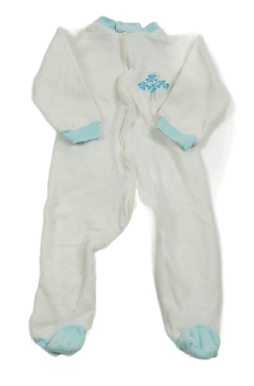 Biely zamatový overal s pomněnkovým lemem a kvietkami