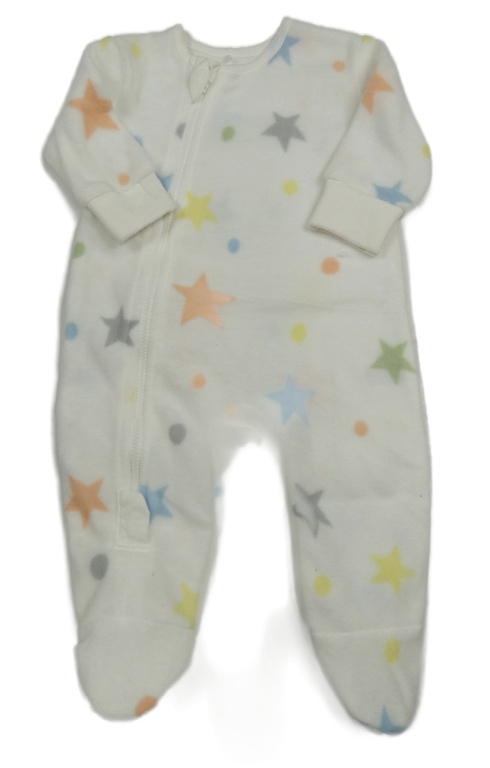 Biely bodkovaná ý fleecový overal s farebnými hviezdičkami St. Bernard