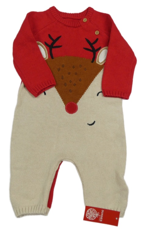 Nové - červeno-svetlobéžový pletený overal so sobom St. Bernard
