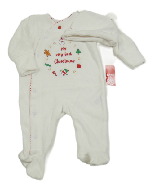 Nové - 2set - Biely zamatový vianočný overal s obrázky + čapica