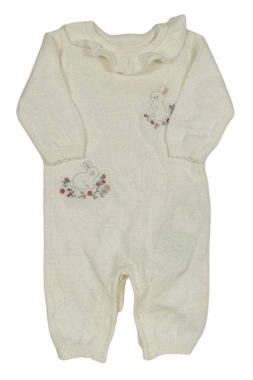 Smotanový pletený overal s králikmi a kvetmi Nutmeg