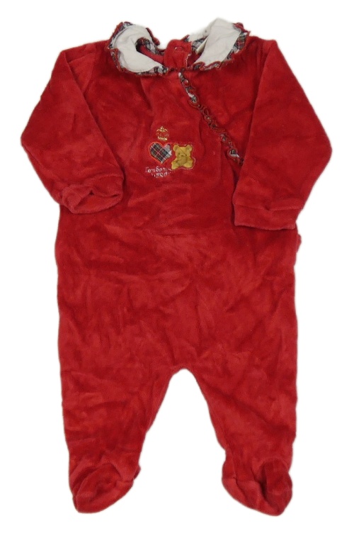 Červený zamatový overal s nášivkou a golierikom