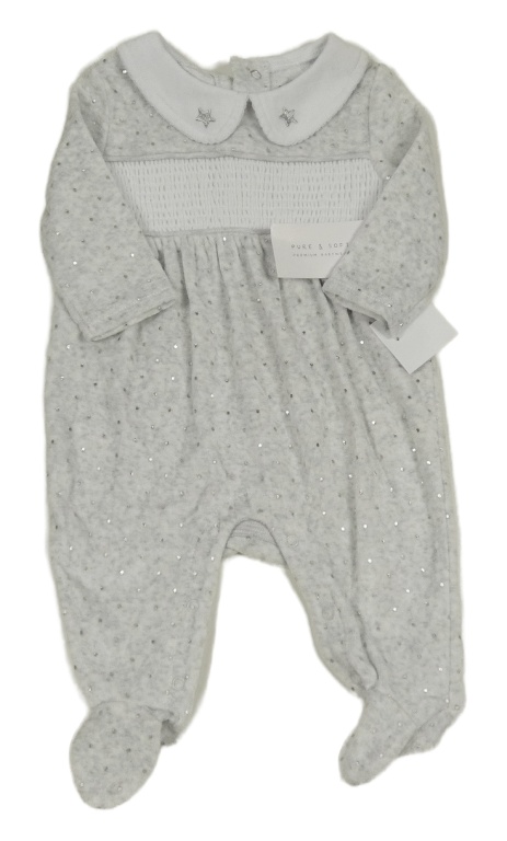 Nové - svetlošedá -biely bodkovaná ý melírovaný zamatový overal s golierikom PURE&SOFT