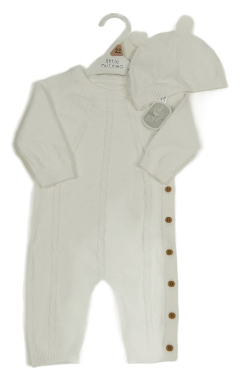 Nové - 2set - Biely pletený overal s knoflíčky + čapica Nutmeg