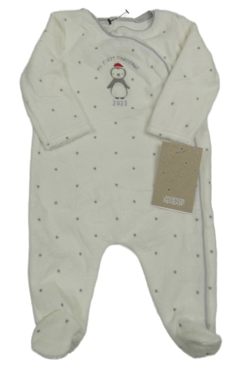 Nové - bielo-svetlosivý zamatový overal s tučňáčkem a hviezdičkami Mamas&Papas