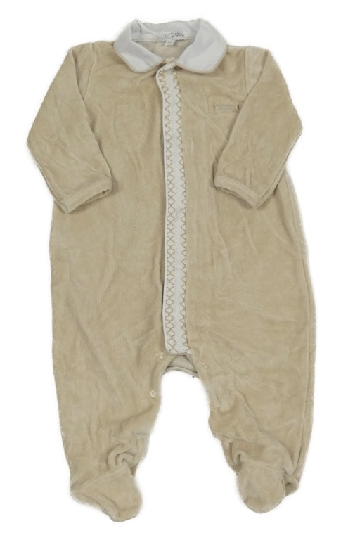 Béžový zamatový overal s výšivkou a golierikom blues baby