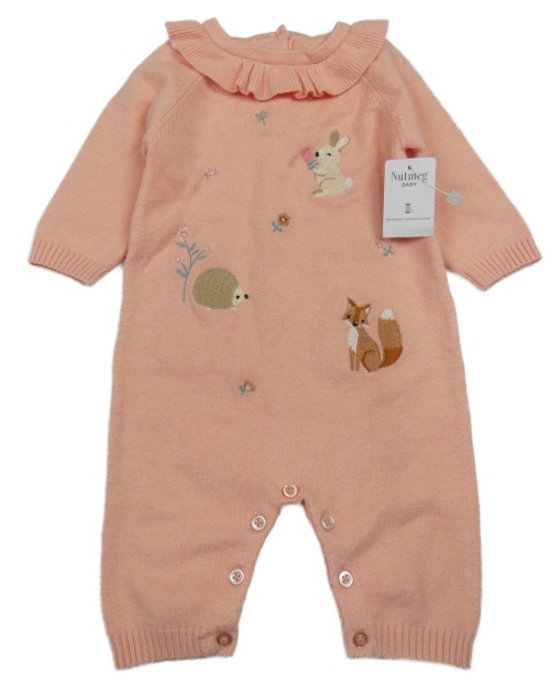 Nové - Ružový pletený overal so zvířaty a golierikom Nutmeg