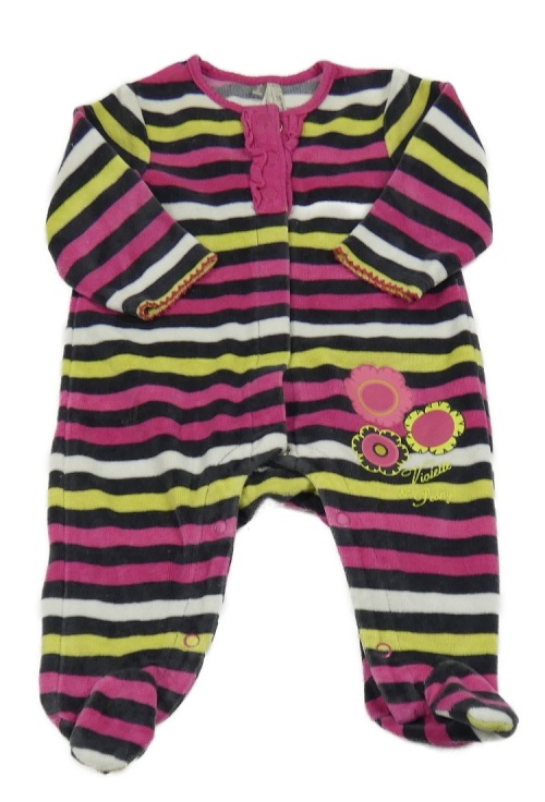 Sivo-bielo-zeleno-ružový pruhovaný zamatový overal s kvetmi