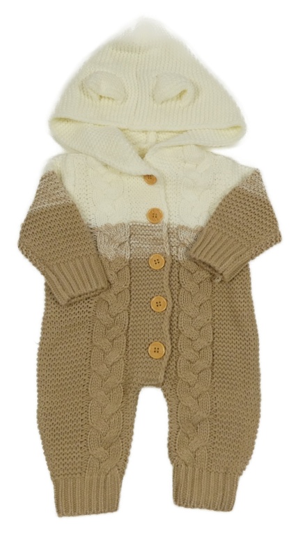 Bielo-béžová pletená kombinéza s kapucňou
