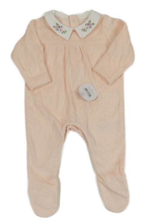 Nové - Svetloružový zamatový overal s golierikom s kvetmi Nutmeg