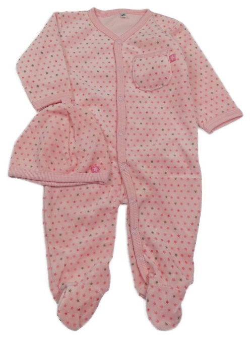 2 set - ružový zamatový overal s hvězdičkami + čapica