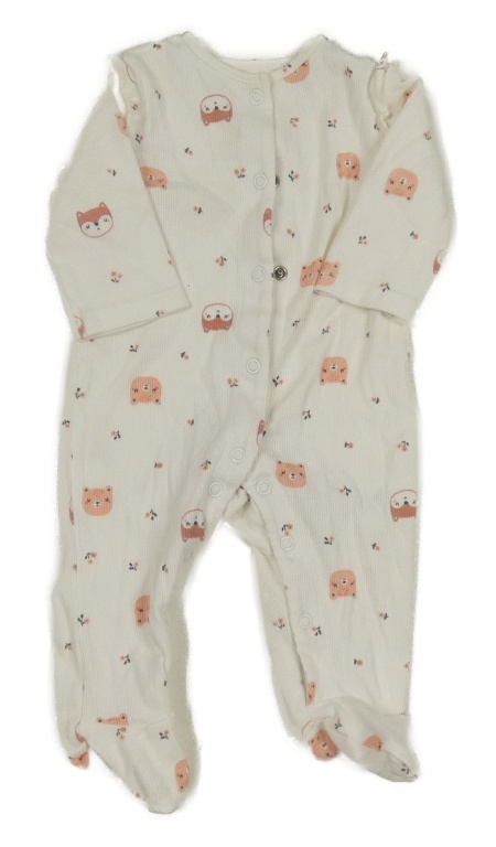 Biely kvetovaný rebrovaný overal s medvedíkmi a liškami