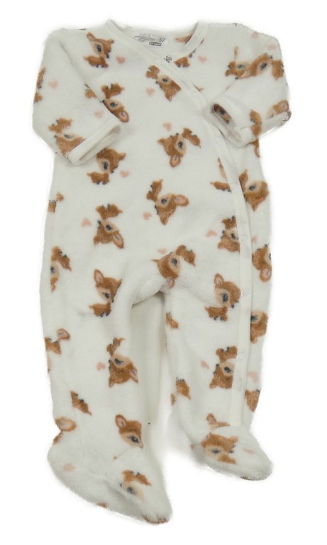 Biela plyšová kombinéza so srnkami a srdiečkami Ergee