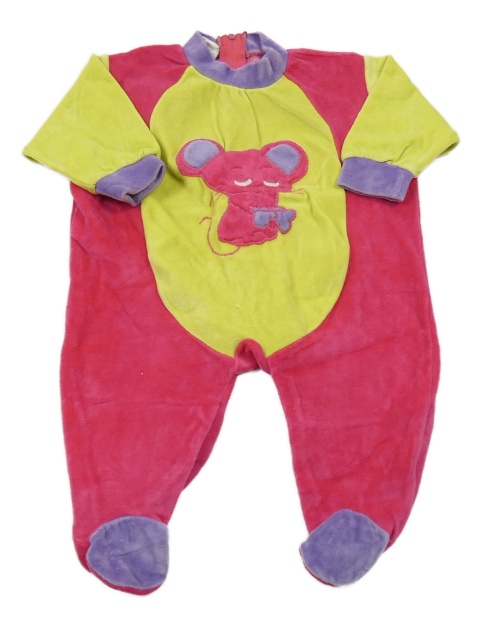 Tmavorůžovo-limetkovo-fialový zamatový overal s myškou