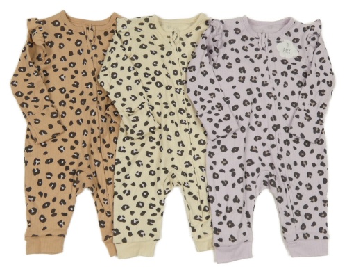 Nové - 3x - Smotanový + béžový + levandulový rebrovaný overal so vzorom George