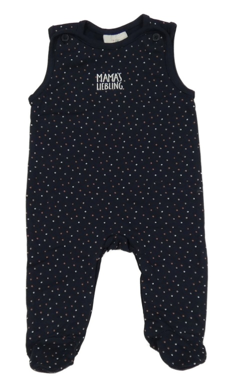 Tmavomodré puntíkované dupačky s nápisom Topomini
