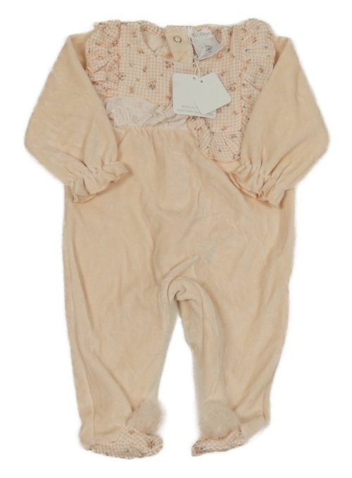 Nové - Ružový zamatový overal s kvetmi a golierikom