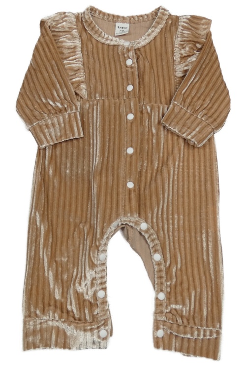Hnedý rebrovaný zamatový overal shein