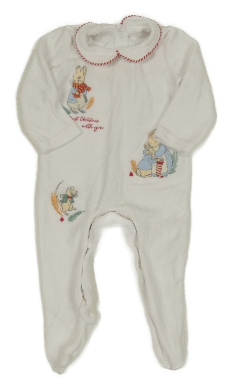 Biely zamatový overal s králikmi