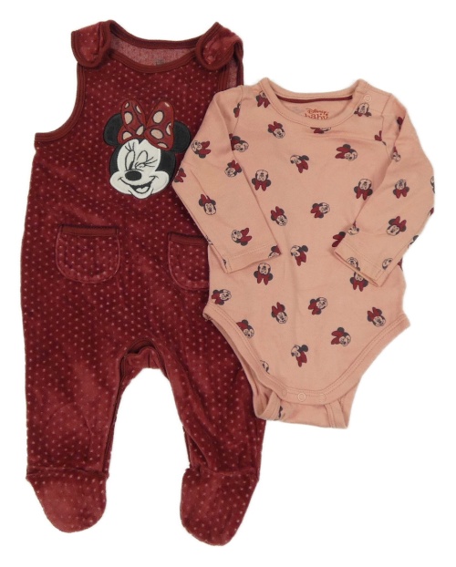 2 set - ružové body s Minne + tmavorůžové sametové dupačky s Minnie C&A