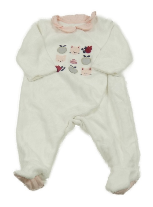 Biely zamatový overal s obrázkami a ružovým golierikom obaibi