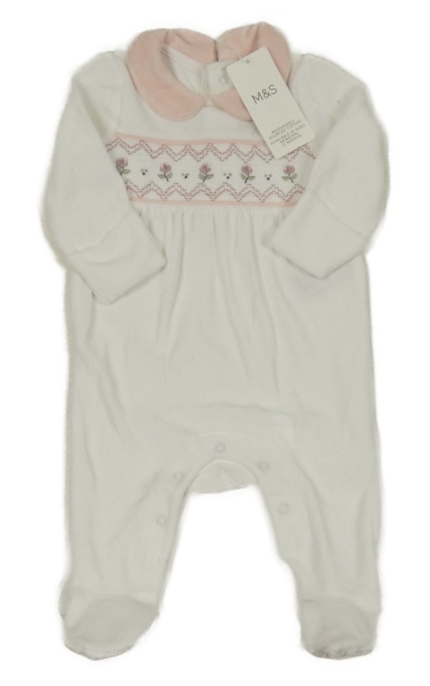 Nové - Bielo-svetloružový zamatový overal s kvietkami a golierikom M&S