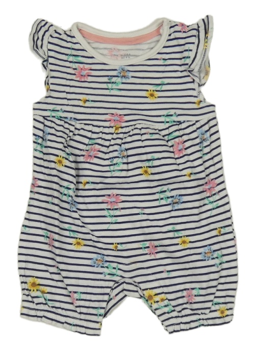 Bielo-tmavomodrý pruhovaný overal s kvietkami F&F