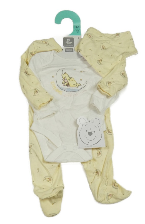 Nové - 3 set - biele body s Púem + žlutý overal + slinták Disney