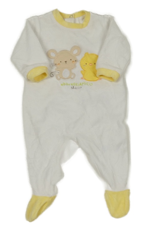 Bielo-žltý zamatový overal so zvieratkami