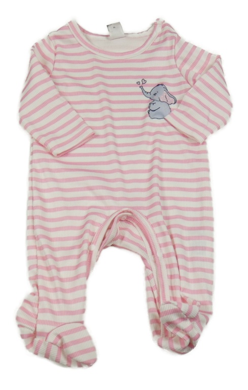 Bielo-ružový pruhovaný rebrovaný overal so slonom shein