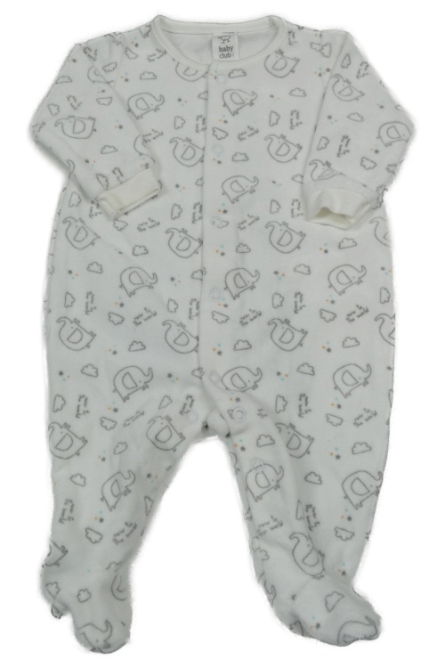 Biely zamatový overal so slonmi a mráčikmi baby club
