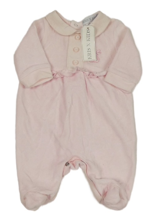 Nové - Svetloružový zamatový overal s králikmi a golierikom