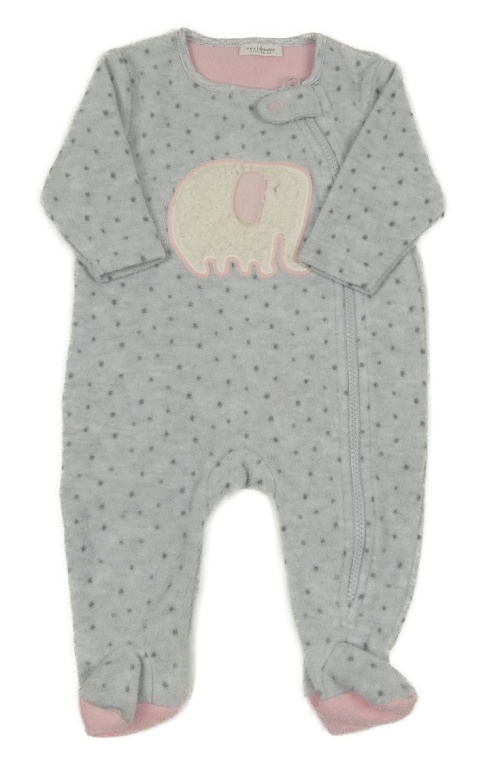 Sivo-ružový bodkovaná ý fleecový overal so slonom Next